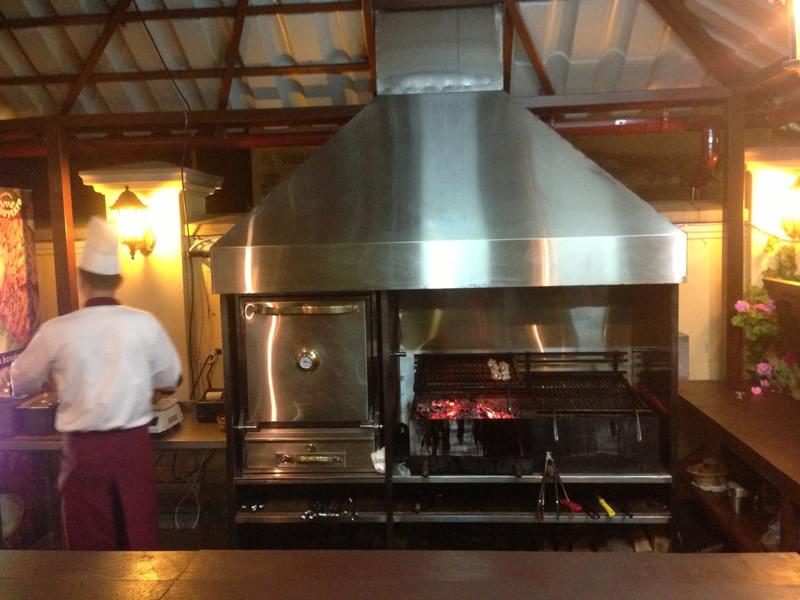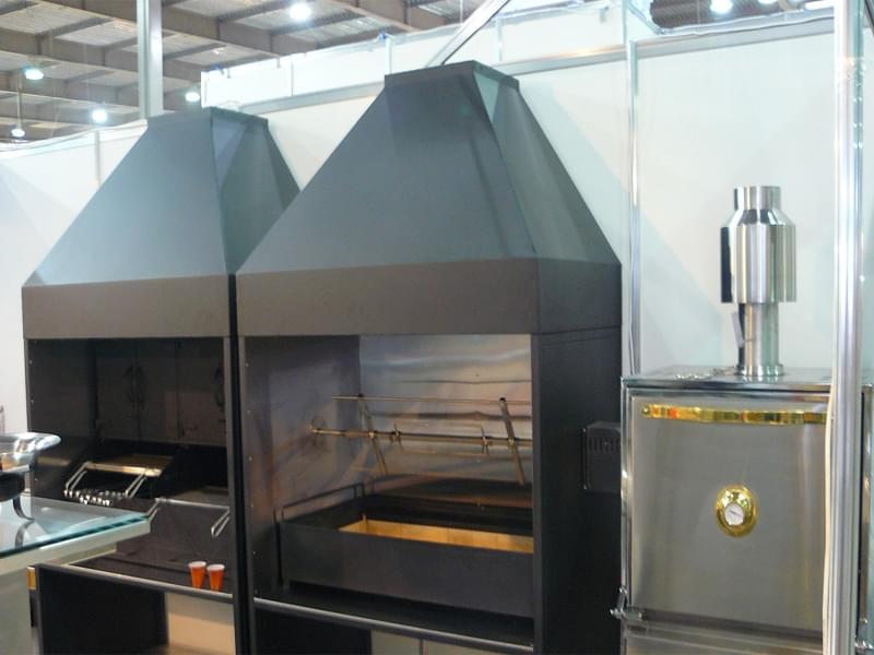Промышленные печи-мангалы изготавливаются из нержавеющей стали, способной выдерживать высокие температуры. Благодаря изоляционному материалу раскаленный воздух не выходит наружу, что позволяет устанавливать оборудование внутри помещений. Наличие водяного искрогасителя, применяемого для подключения агрегата к общей системе вентиляции, предотвращает риск возникновения запаха дыма или гари.